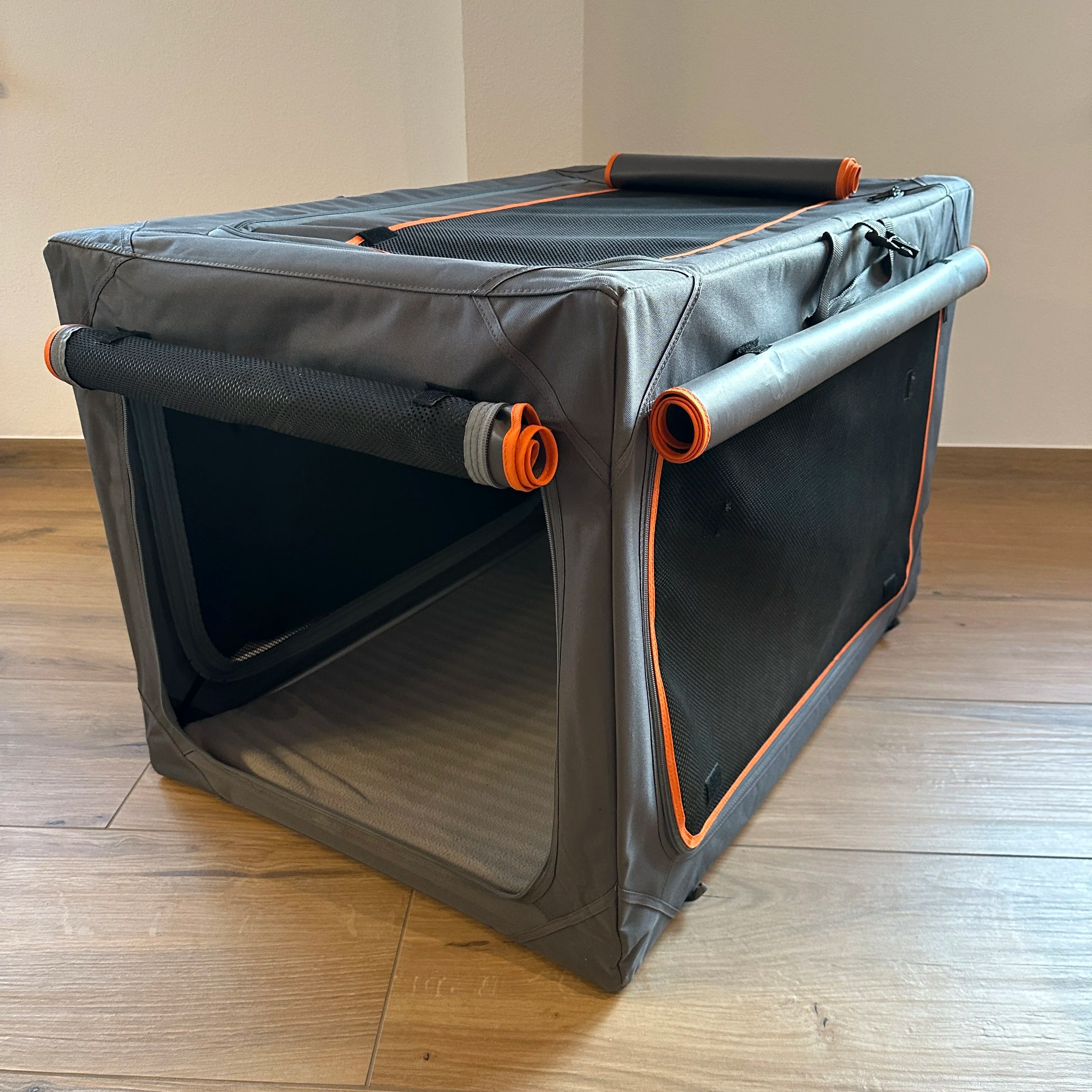 Wir empfehlen die faltbaren Nylonboxen. Die sind nicht nur schnell und einfach auf- und abgebaut, durch ihr geringes Gewicht kann man sie auch optimal überall mit hinnehmen.
